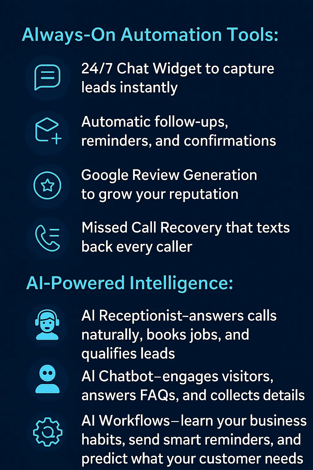 Smart workflows and automations that streamline your entire operation, reduce manual tasks, and keep your business running smoothly around the clock.